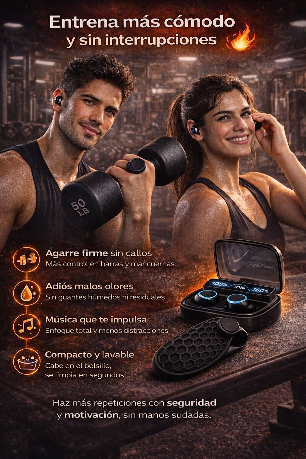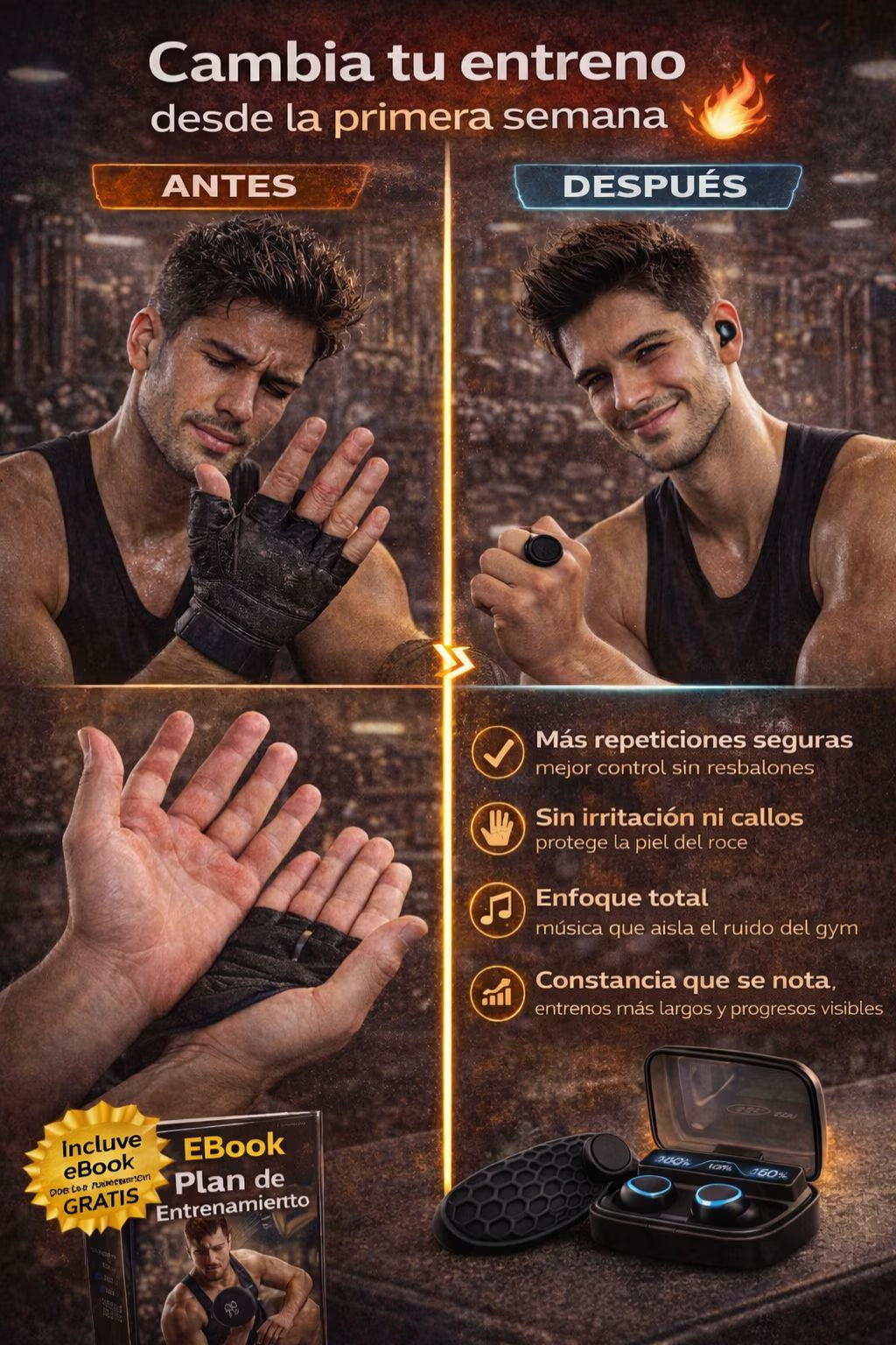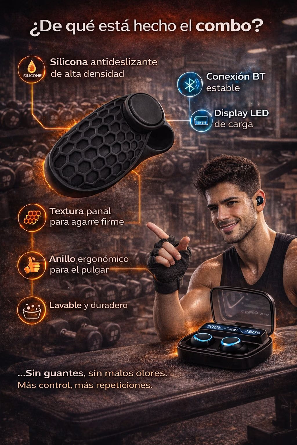 COMBO para GYM Protector de Mano Y Audifonos | Sportfitness®|